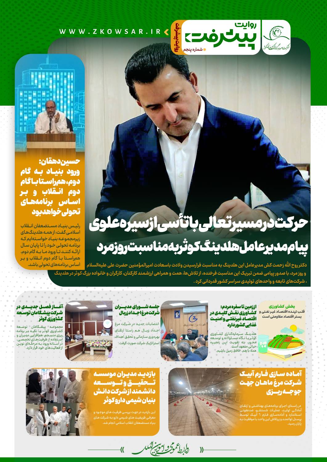 بازتاب مهمترین اخبار هلدینگ سرمایه گذاری کشاورزی کوثر و تلاش های خانواده بزرگ هلدینگ کشاورزی کوثر در مسیر تعالی همراه با سیره علوی در پنجمین شماره روایت پیشرفت منعکس شده است.